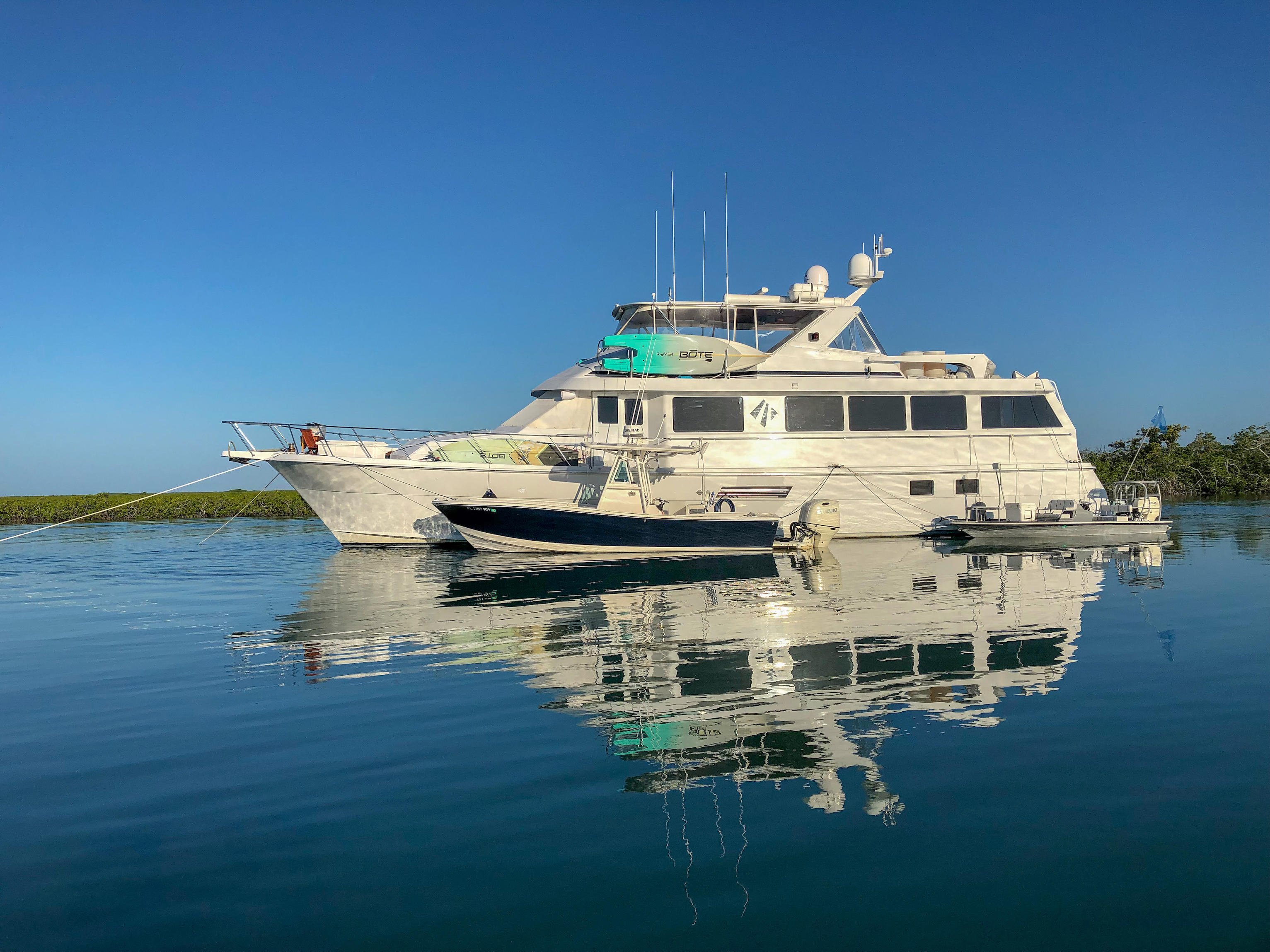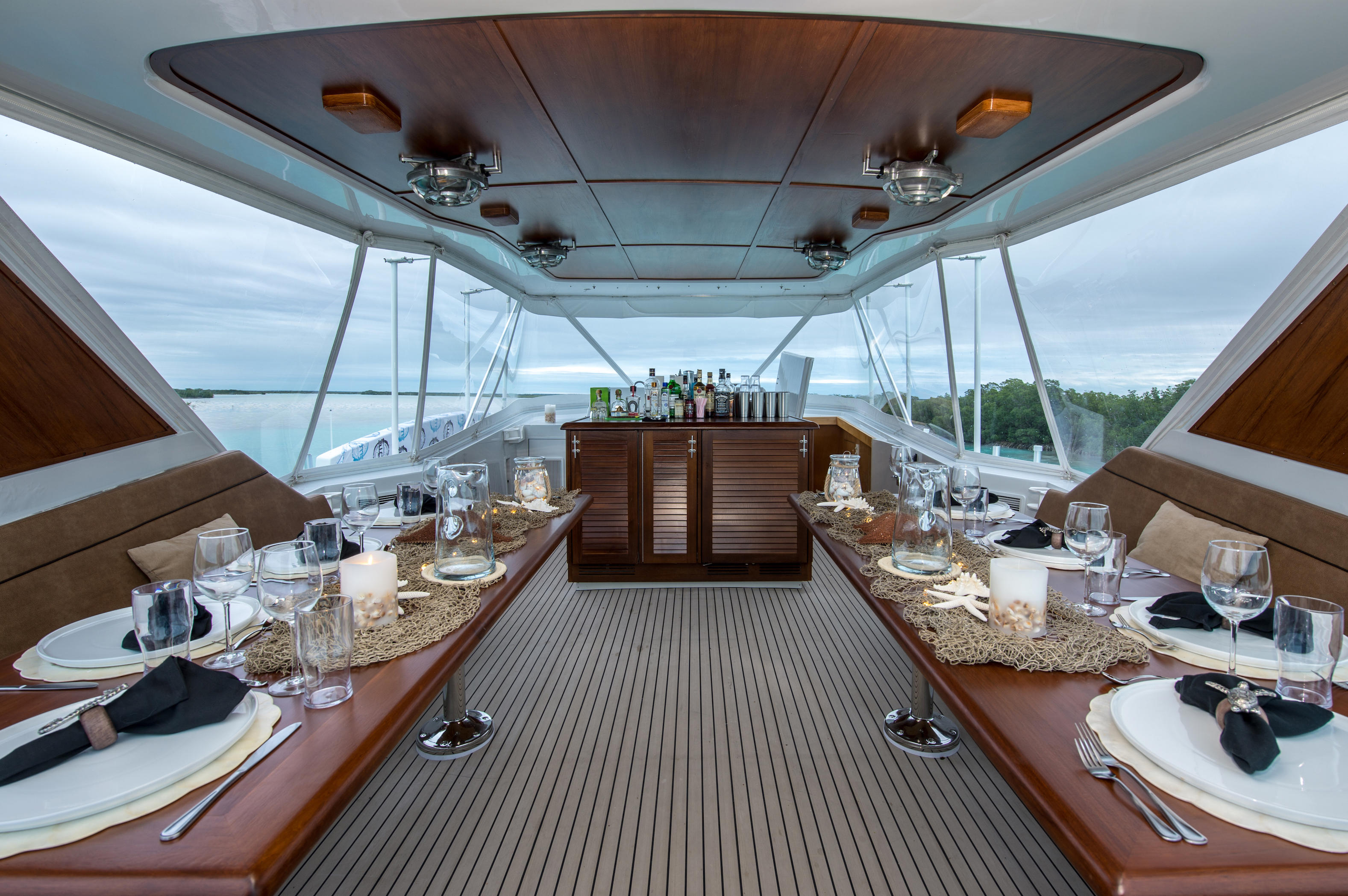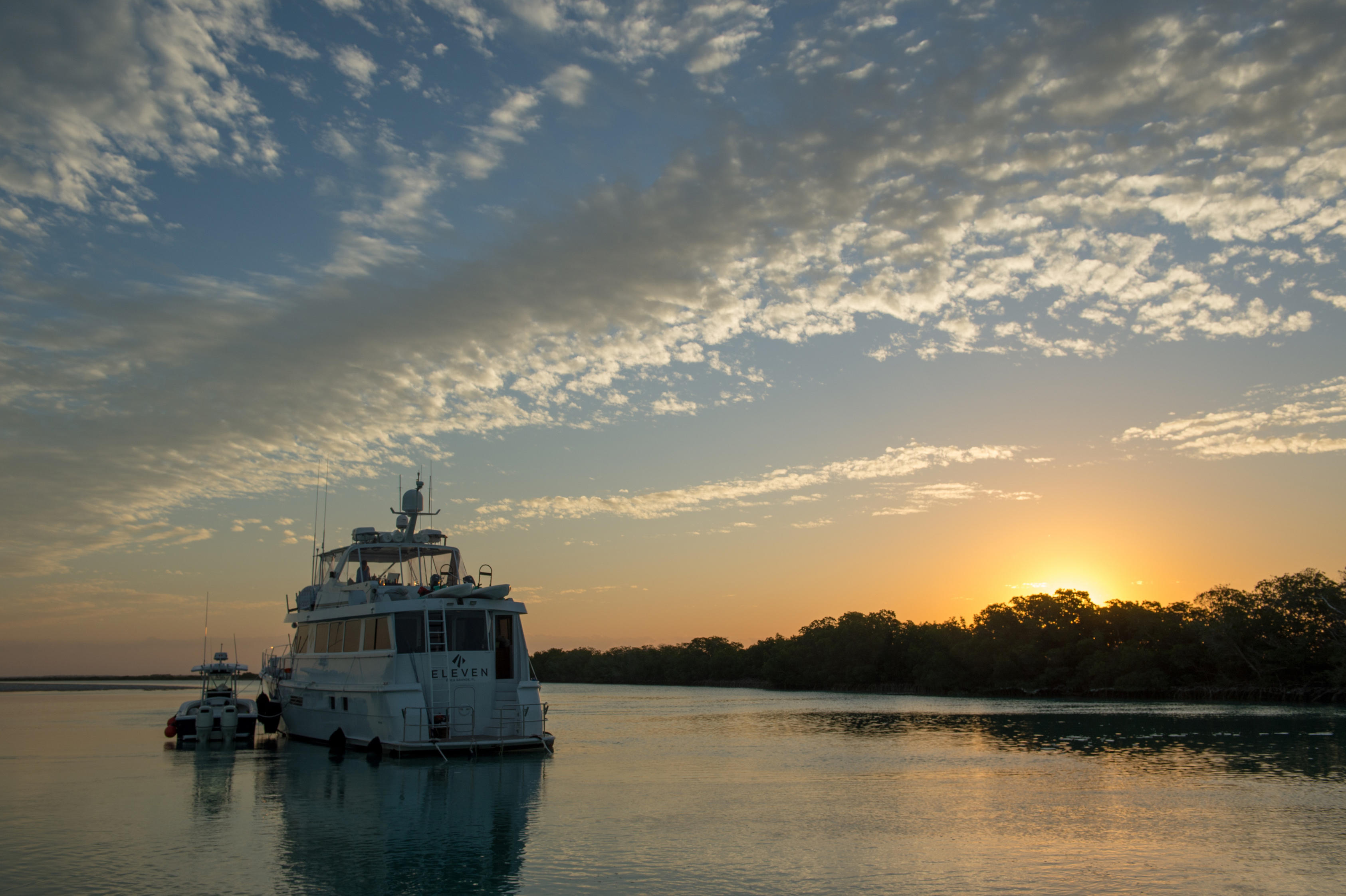 Contacts --The Eleven Mothership takes liveaboard fishing to a new level. Staffed with a captain, chef, and crew, our 74′ Hatteras is a floating boutique lodge, with three staterooms and plenty of hang space. From October through June, the Eleven Mothership calls the fish-filled waters of South Andros home. The Water Cays anchorage at the southernmost tip is surrounded by protected flats and creeks, and is a bonefish haven. The nearby Tongue of the Ocean offers world-class reef and offshore fishing featuring marlin, wahoo, tuna, and dorado. The South Bight Miller Creek anchorage is home to big bones, plentiful resident tarpon plus permit, mutton snapper, barracuda, and sharks. Seasoned Bahamian guides captaining custom-built Beavertail skiffs equipped with G-Loomis rods and Nautilus reels, lead guests on daily angling adventures. There’s no such thing as an itinerary here. You fish on your own schedule with the tides, then retire to the Eleven Mothership, where cold drinks and fresh seafood await. Trips of any length are customized to your needs, and a perfect add-on is the Eleven Mothership’s sister property, Bahama House, on nearby Harbour Island. Enjoy socially distanced luxury accommodations with EPA and CDC approved cleaning guidelines during your stay with Eleven.